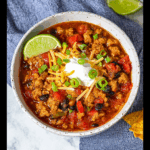 • Sour Cream: This cool topping balances the chili’s heat perfectly.